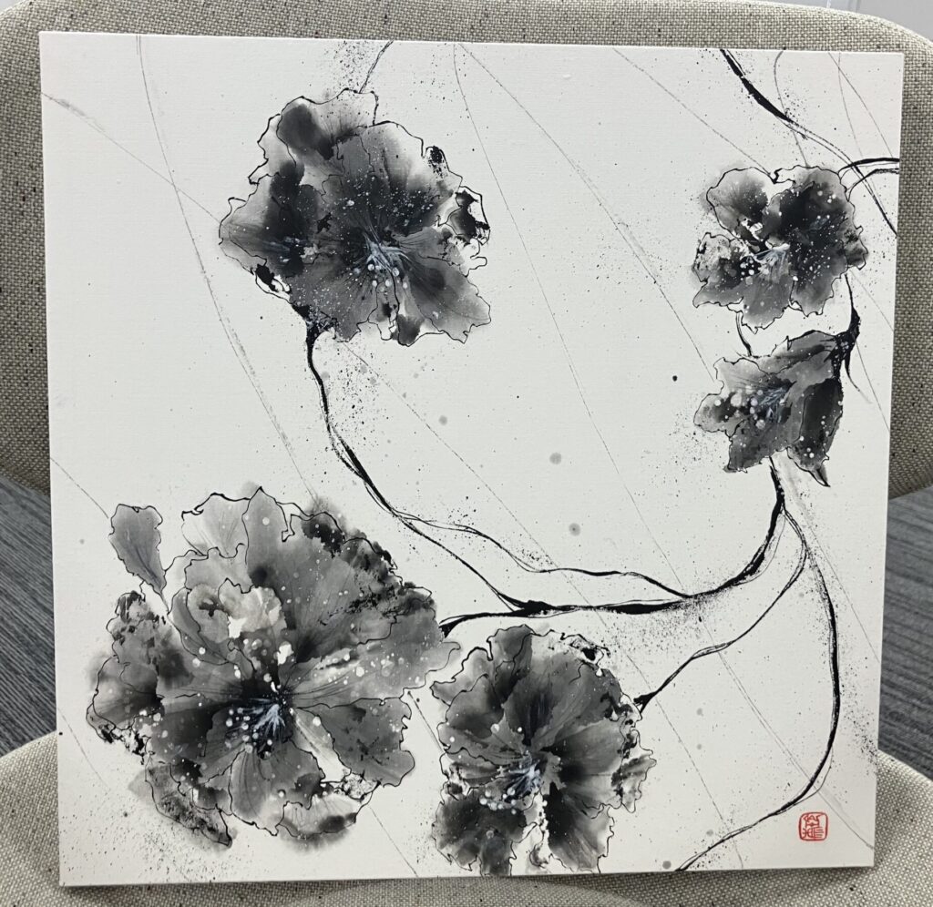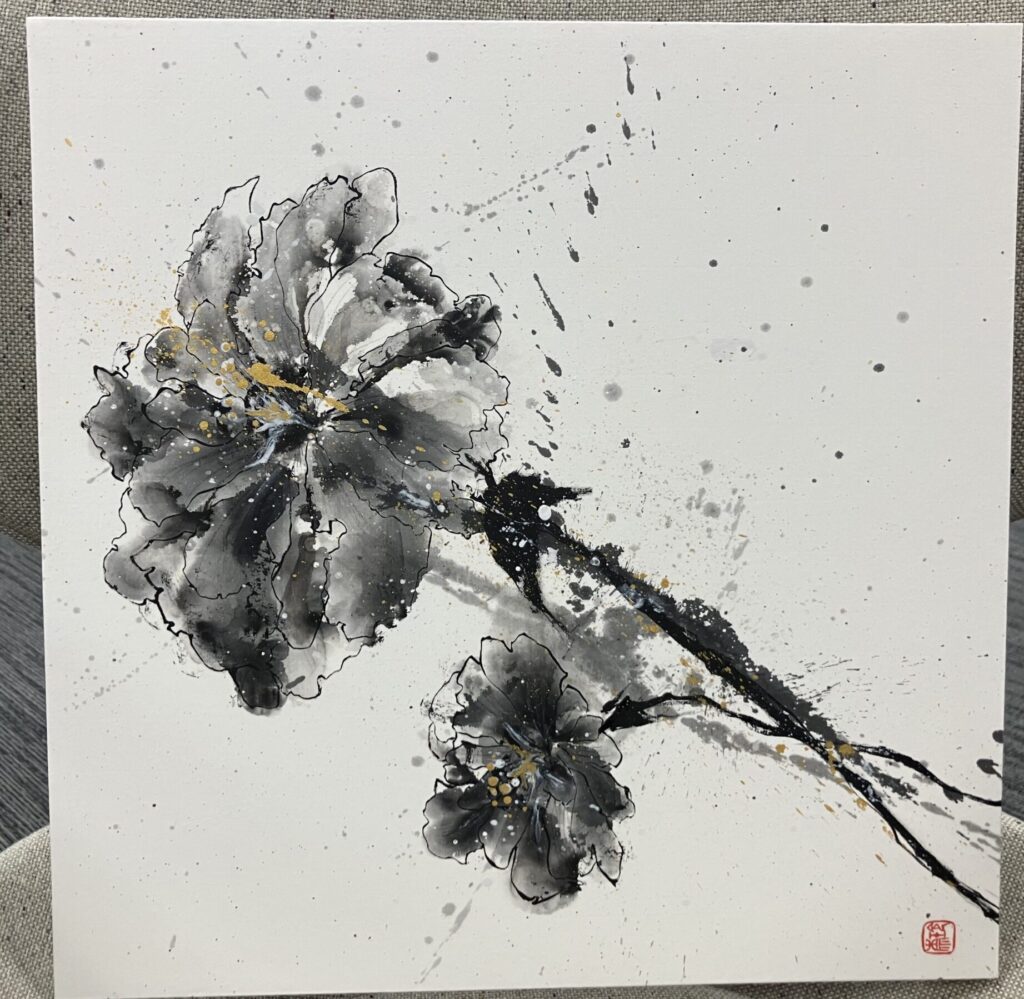 左の水墨画が「チャレンジ」・右の水墨画が「成長」