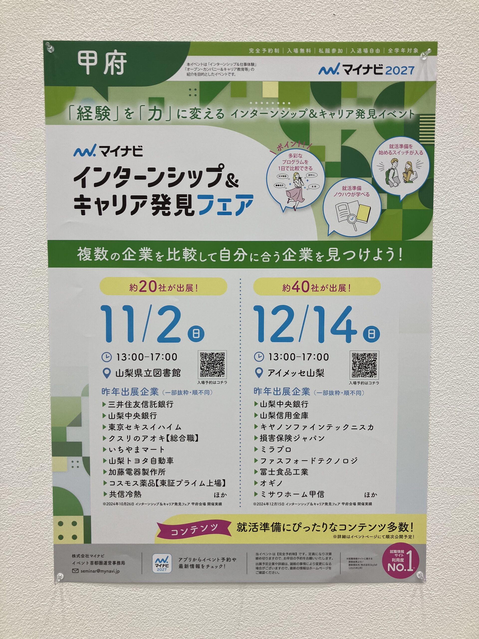 当社は、マイナビ主催の以下のイベントに出展し、将来の就職を見据える学生の皆さまと交流する機会をいただきました。