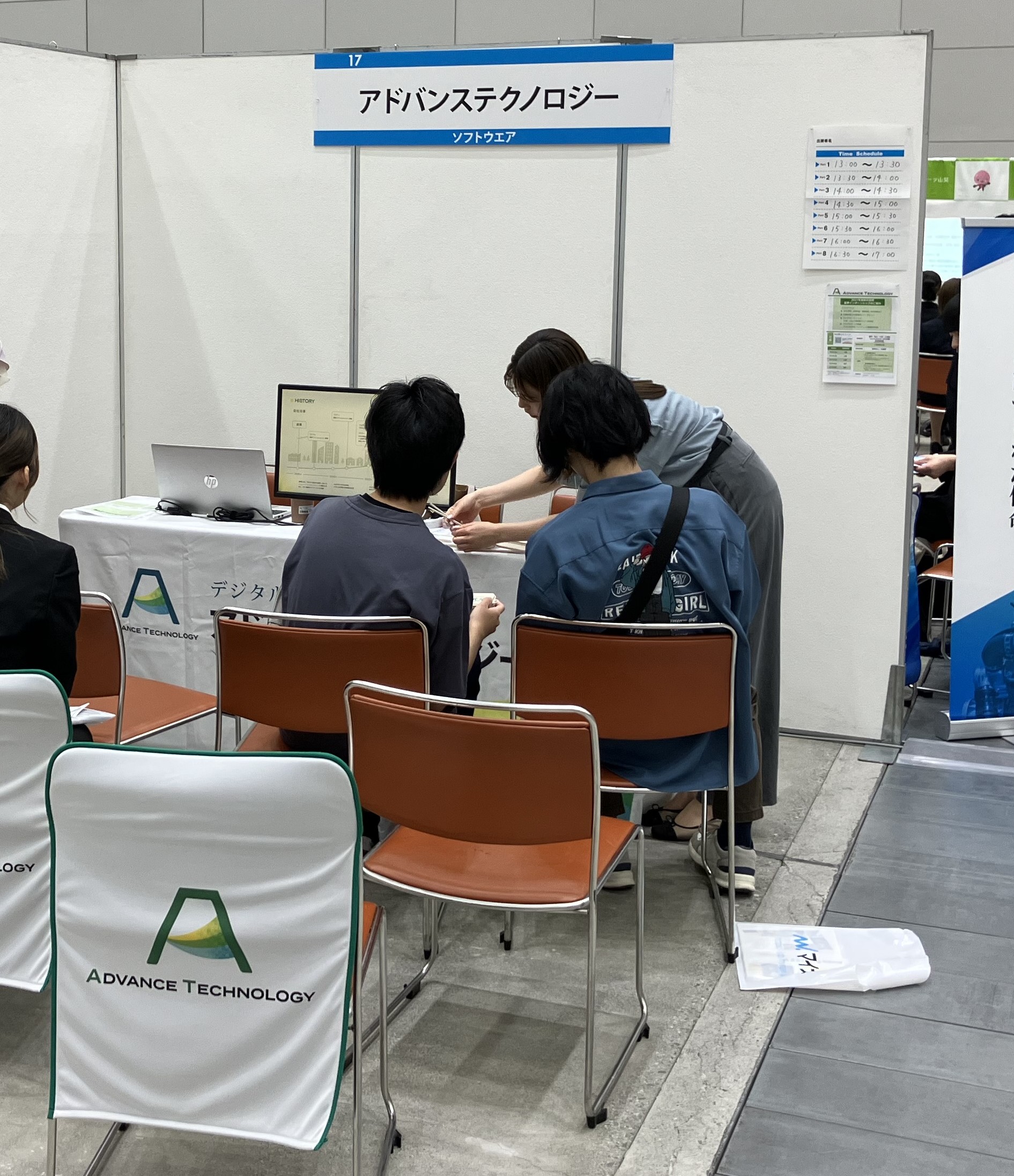 当社のブースには多数の学生が訪問し、IT業界における業務内容や働き方、求める人物像について、熱心に質問をいただきました。中でも、クラウドやAIなどの先端技術分野に関心を持つ学生が多く、当社の取り組みに対して高い関心が寄せられました。