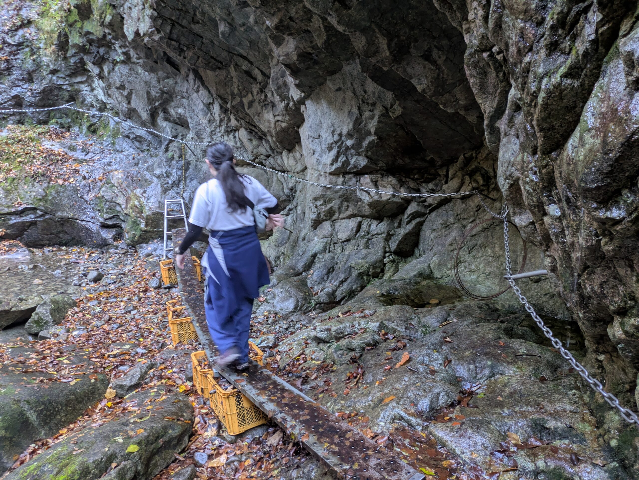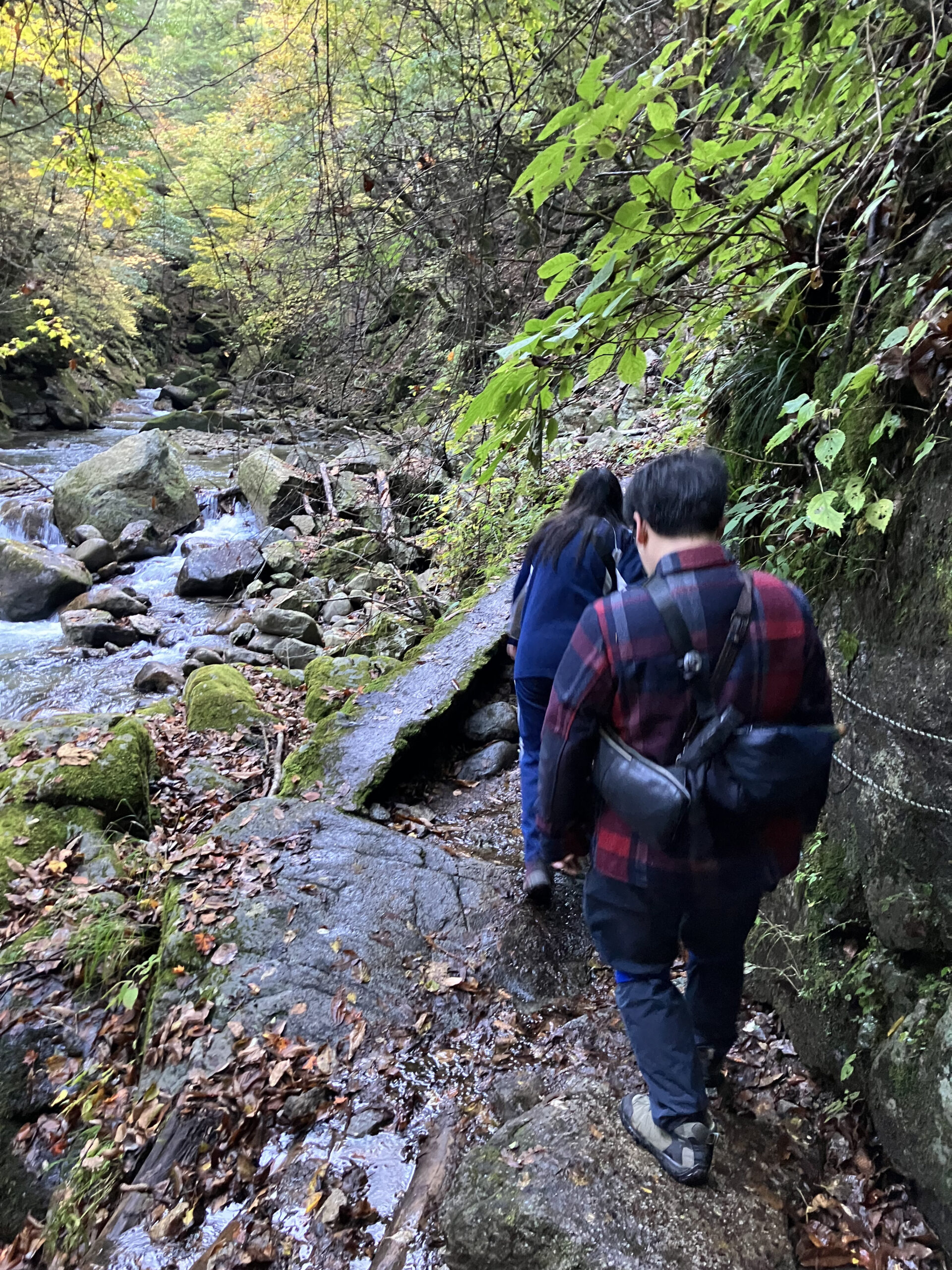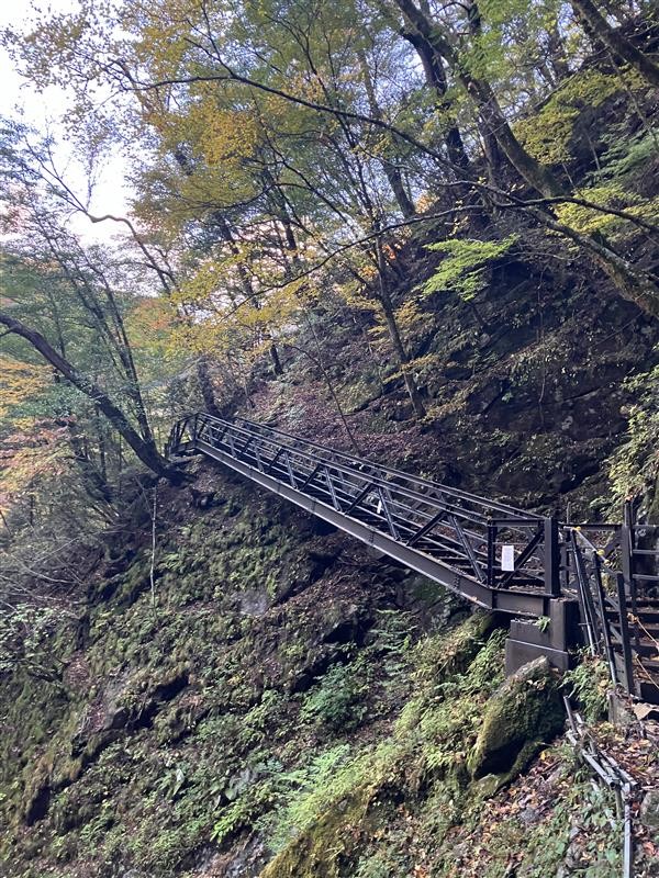 岩肌に張りつくような細い道、濡れた木の根、そして揺れる吊り橋――。