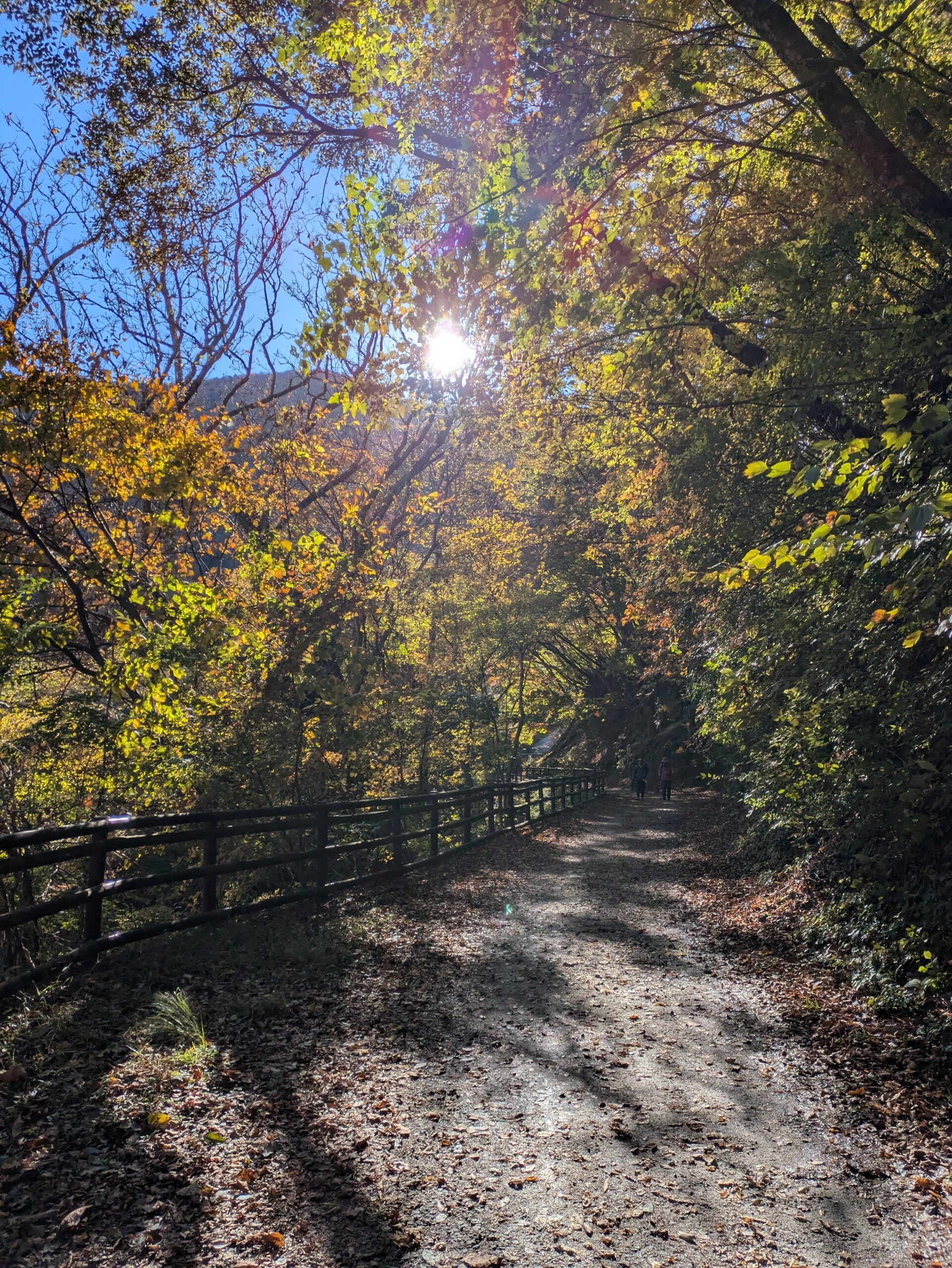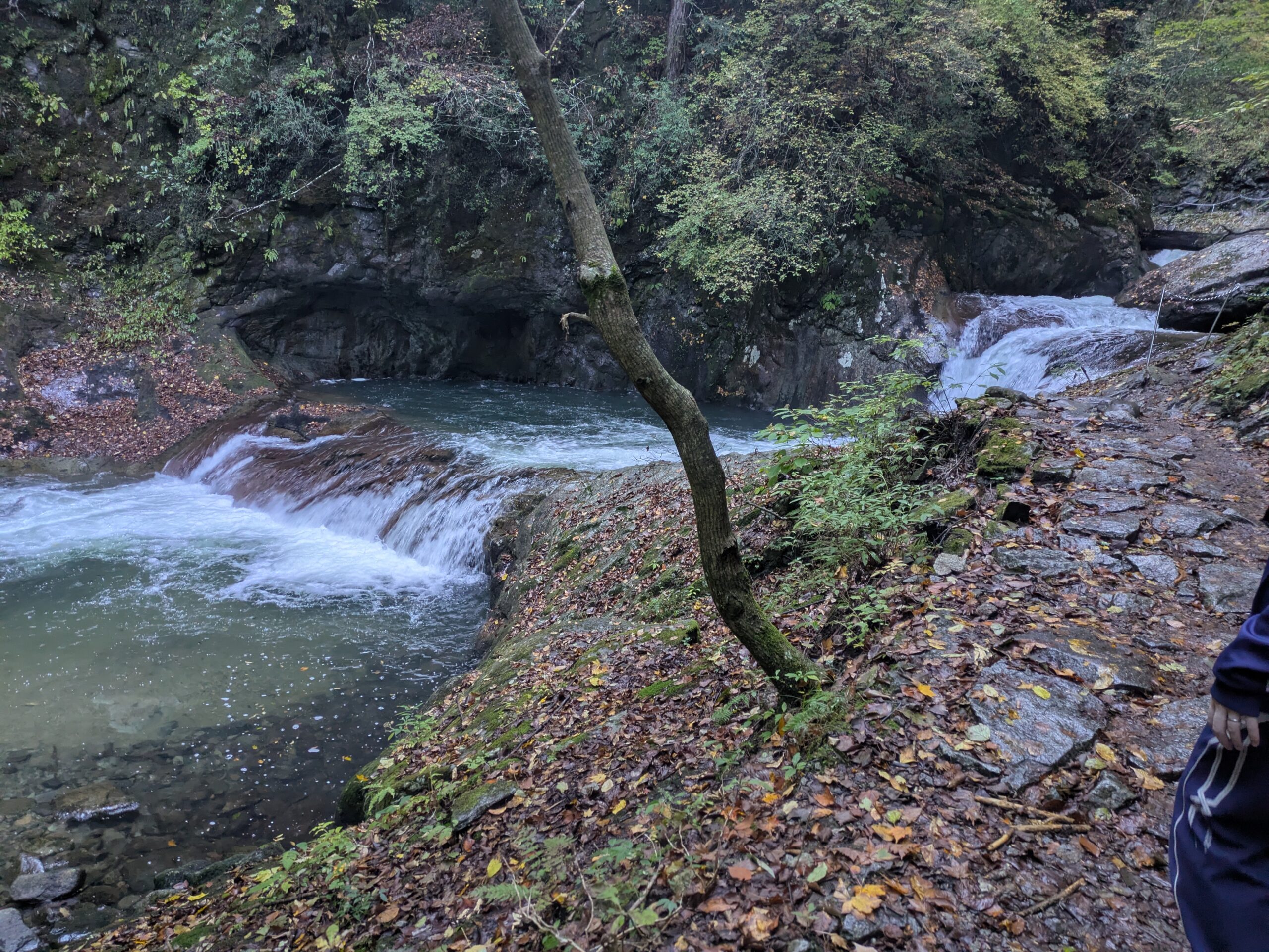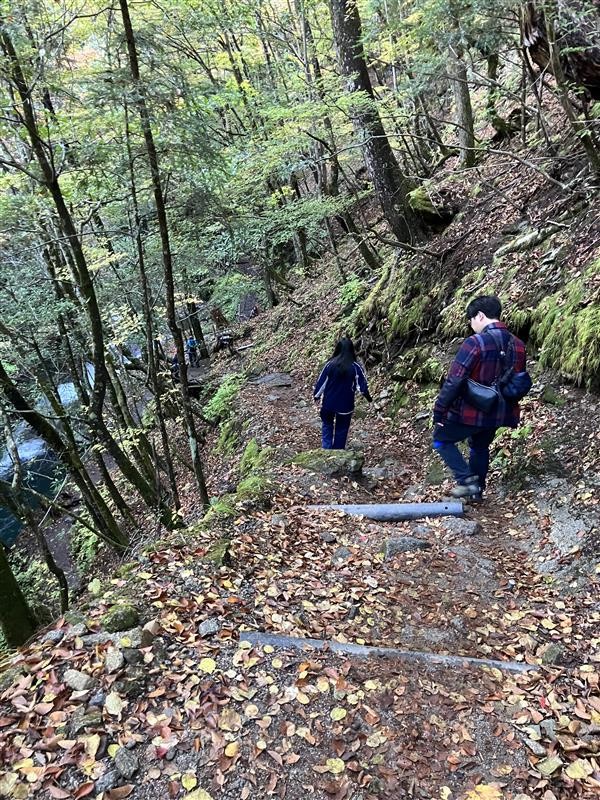 渓谷沿いの遊歩道を歩き始めると、すぐに聞こえてくるのは水のせせらぎと鳥の声です。まず、空気が澄んでいて、街では感じられない冷たさが肌に心地よく触れます。
